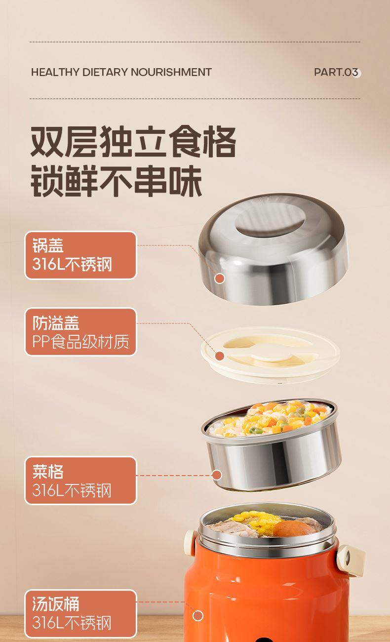 產(chǎn)品組合:12小時保溫提鍋 產(chǎn)品規(guī)格:1500ml 13.5*17cm 材 質(zhì):316不銹鋼 包 裝:OPP