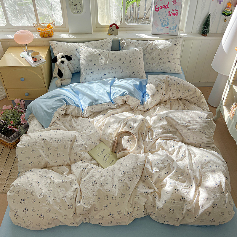 花花公子-家紡-古法水洗棉小清新印花四件套