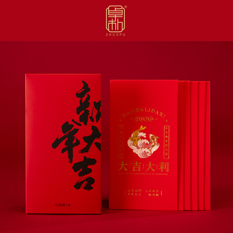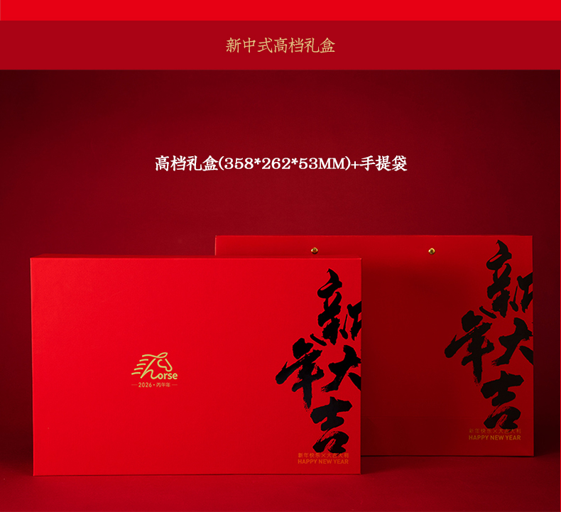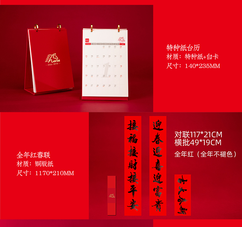配置:臺歷+春聯(lián)+撲克*2+紅包袋*6 材質(zhì):五金+特種紙+特級白芯 尺寸:臺歷140*235mm 紅包袋95*175mm 撲克99*62mm 春聯(lián)210*1180mm 包裝:禮盒(358*262*53mm)+手提袋