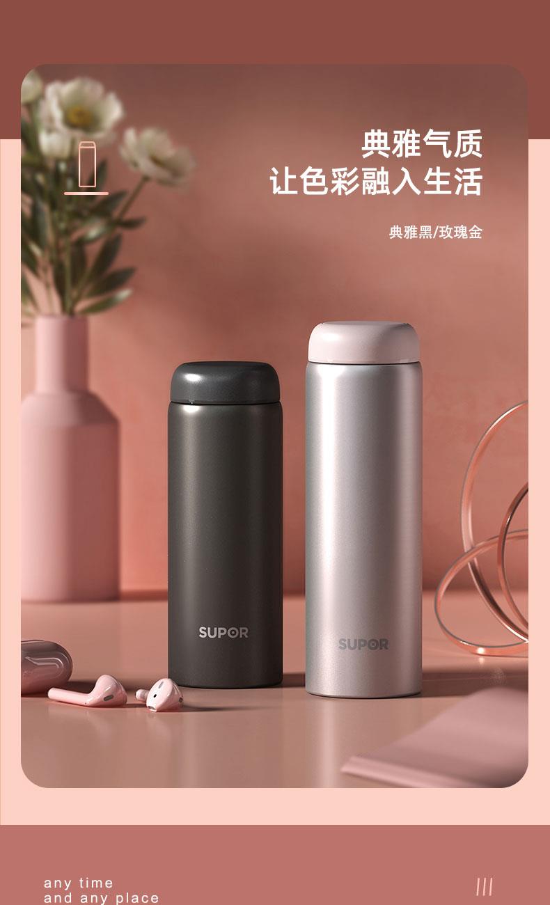 蘇泊爾保溫杯典雅黑、玫瑰金(380ml)KC38FP10 禮品已成功加入PPT!