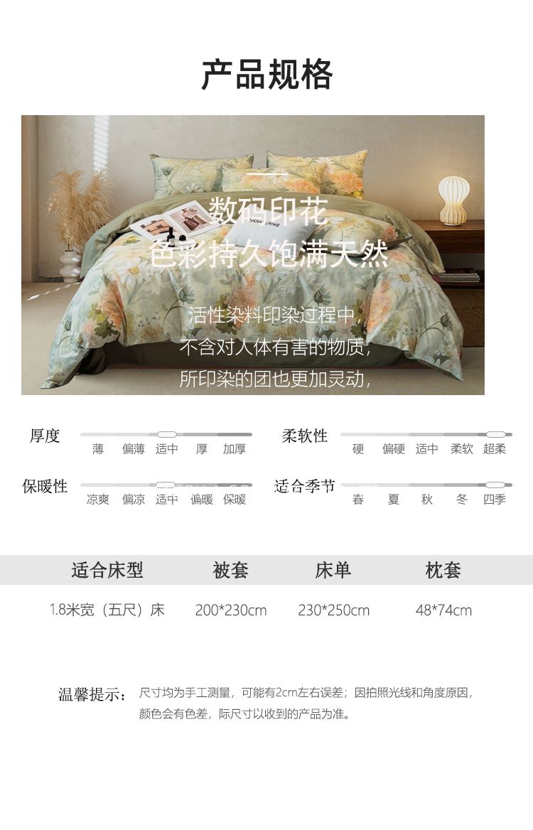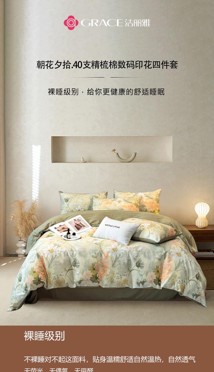 潔麗雅(Grace)朝花夕拾.40支精梳棉數(shù)碼印花四件套