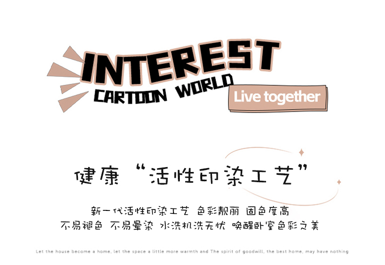 3:新一代活性印染工藝 色彩靚麗 固色度高不易褪色 不易暈染 水洗機(jī)洗無(wú)憂 喚醒臥室色彩之 美