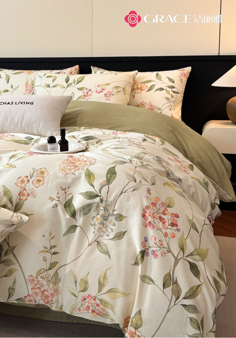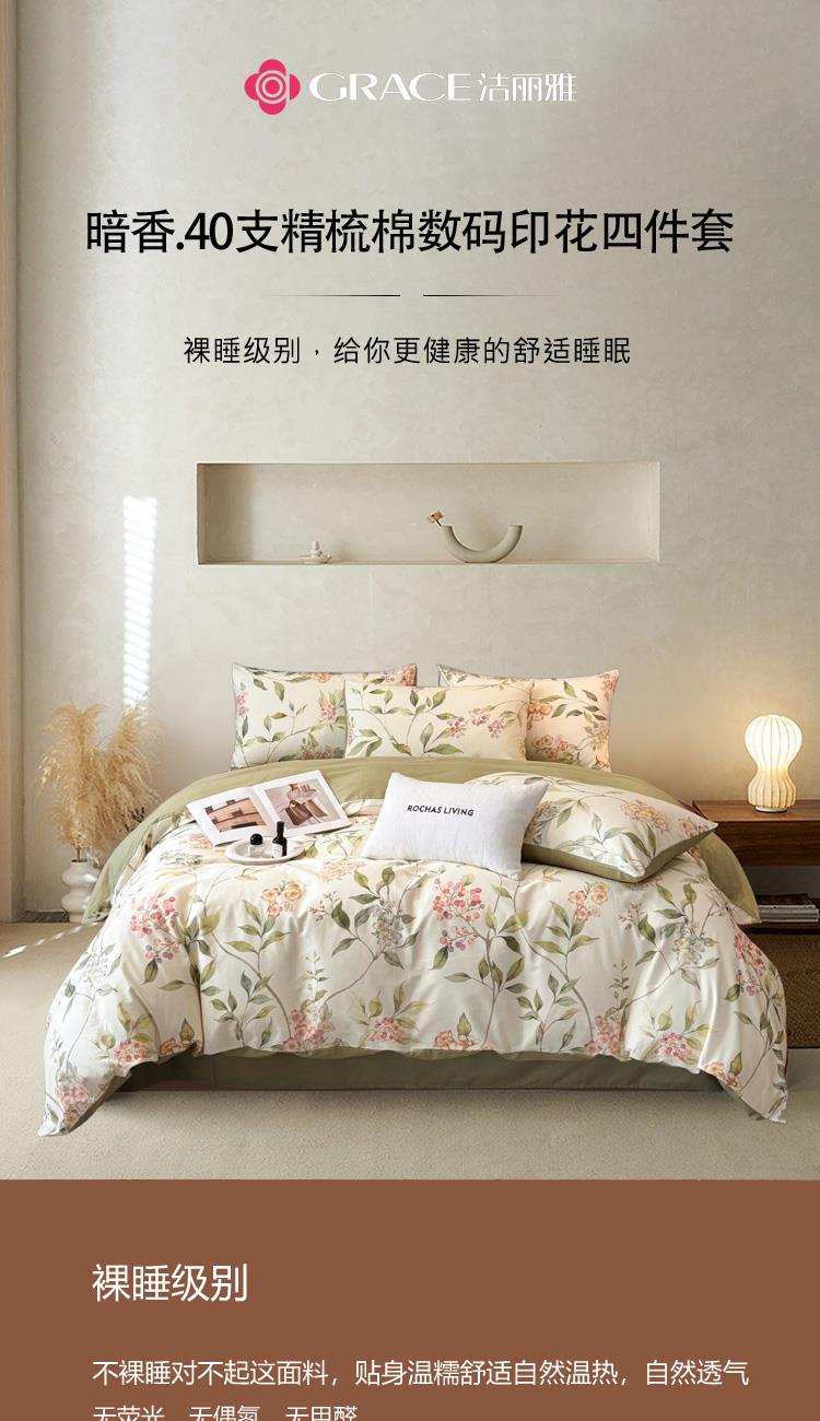 潔麗雅(Grace)暗香.40支精梳棉數(shù)碼印花四件套