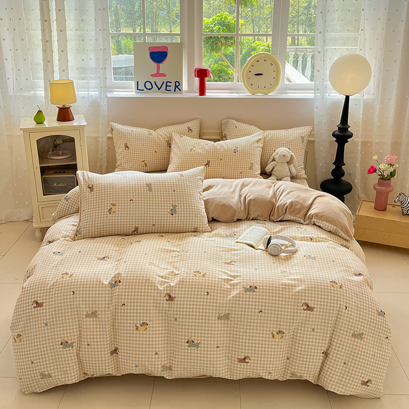 花花公子-家紡-全棉+牛奶絨印花保暖秋冬四件套 花花公子-家紡-全棉+牛奶絨印花保暖秋冬四件套