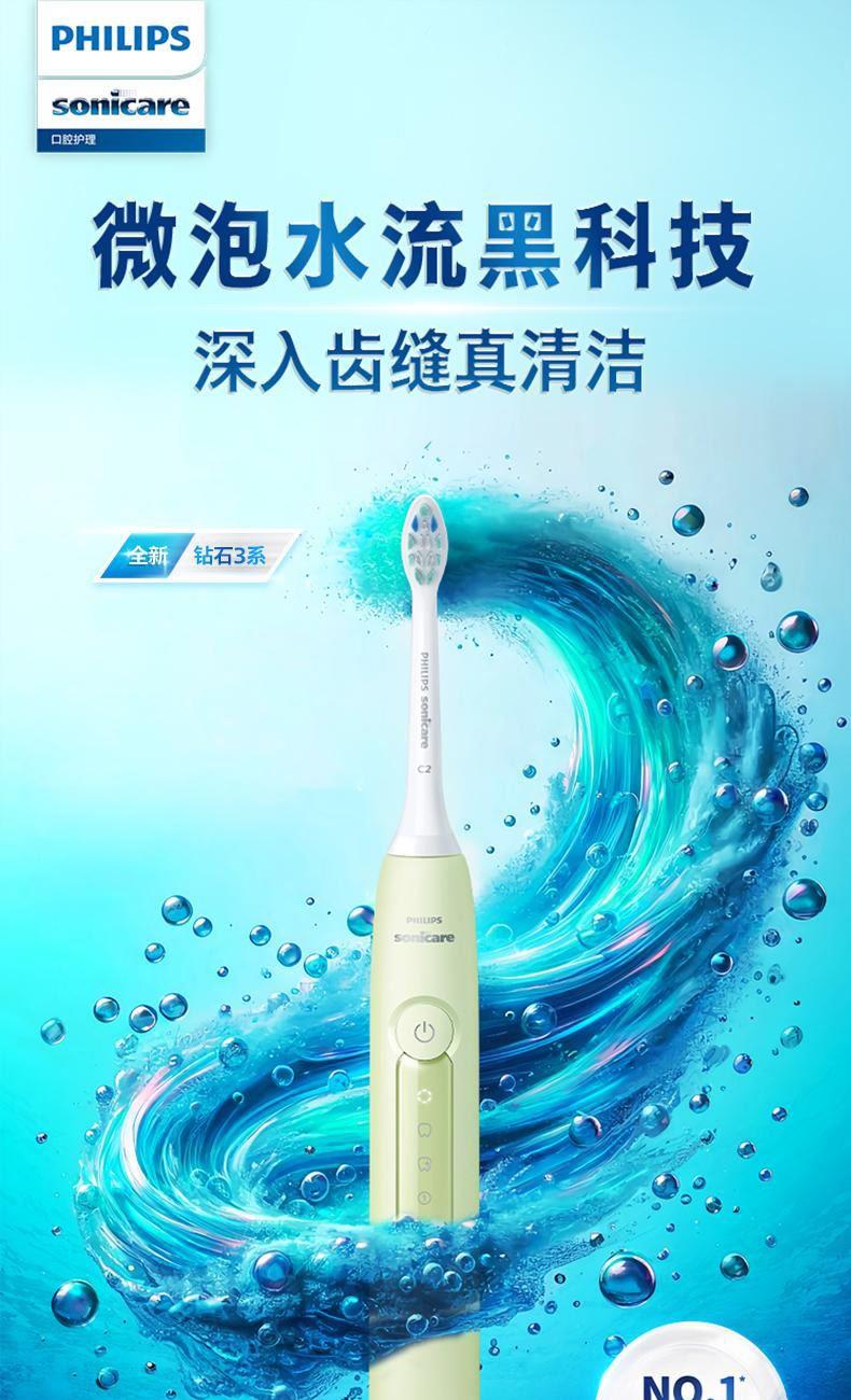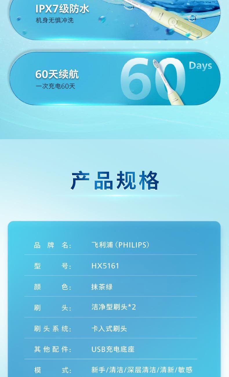 飛利浦電動(dòng)牙刷鉆石3系HX5161/05抹茶綠