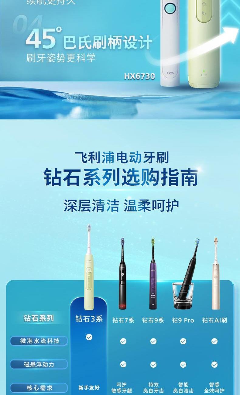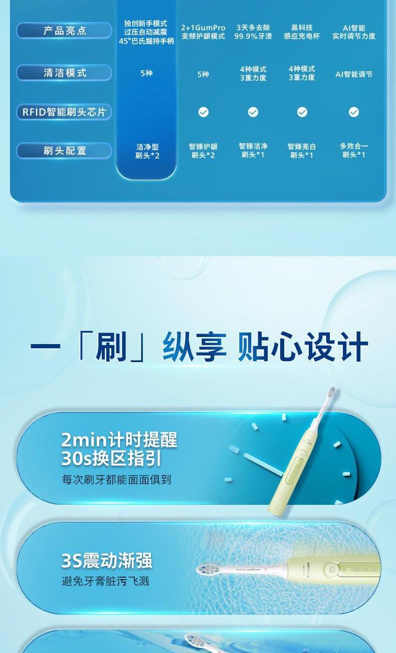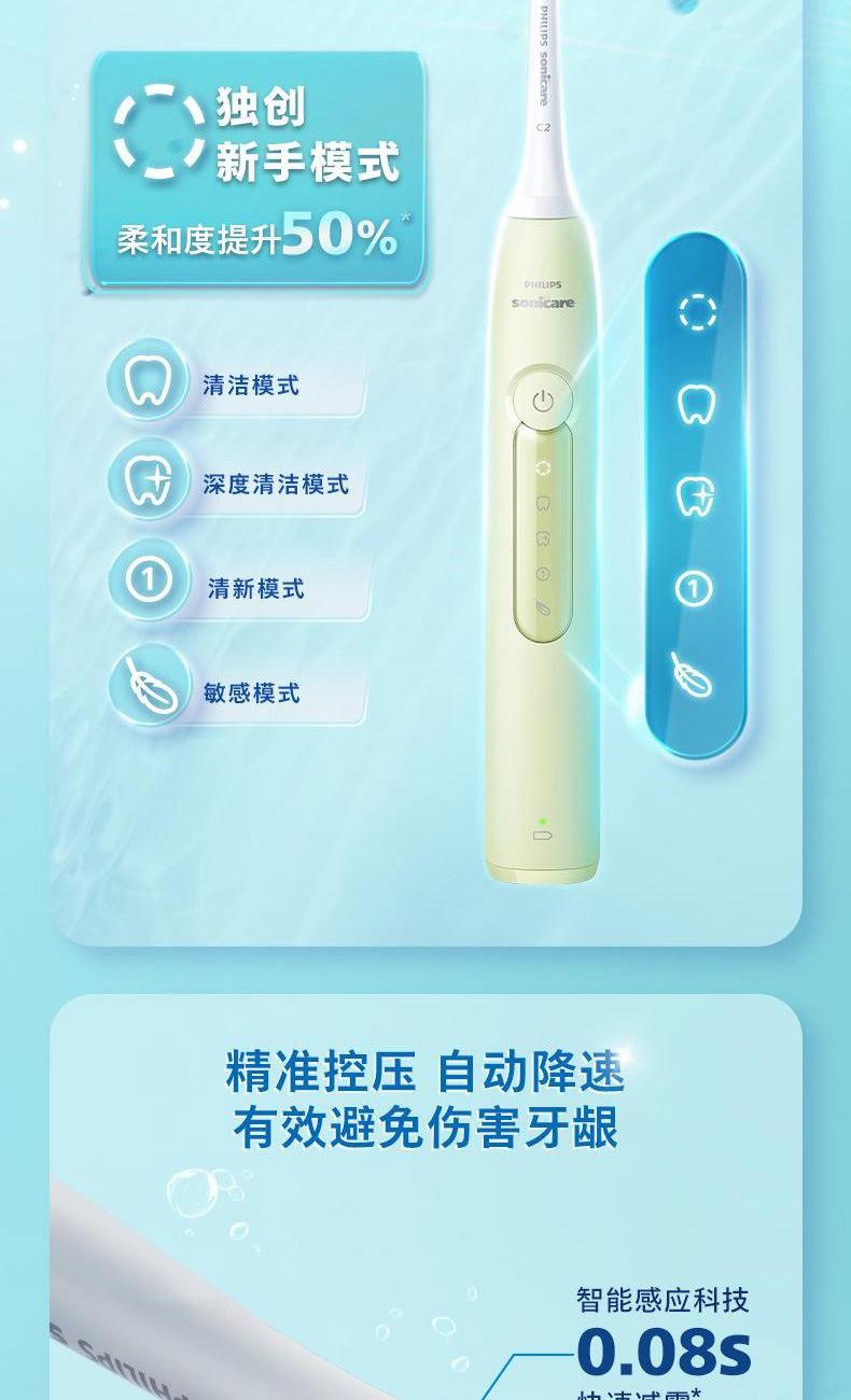 ? 飛利浦 Sonicare 先進(jìn)的聲波技術(shù) 新手模式45度巴氏握持手柄設(shè)計(jì)