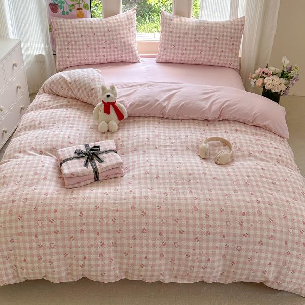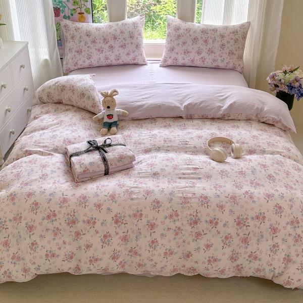 花花公子-家紡-水洗棉有氧雙層紗印花云感木棉皺皺紗四件套