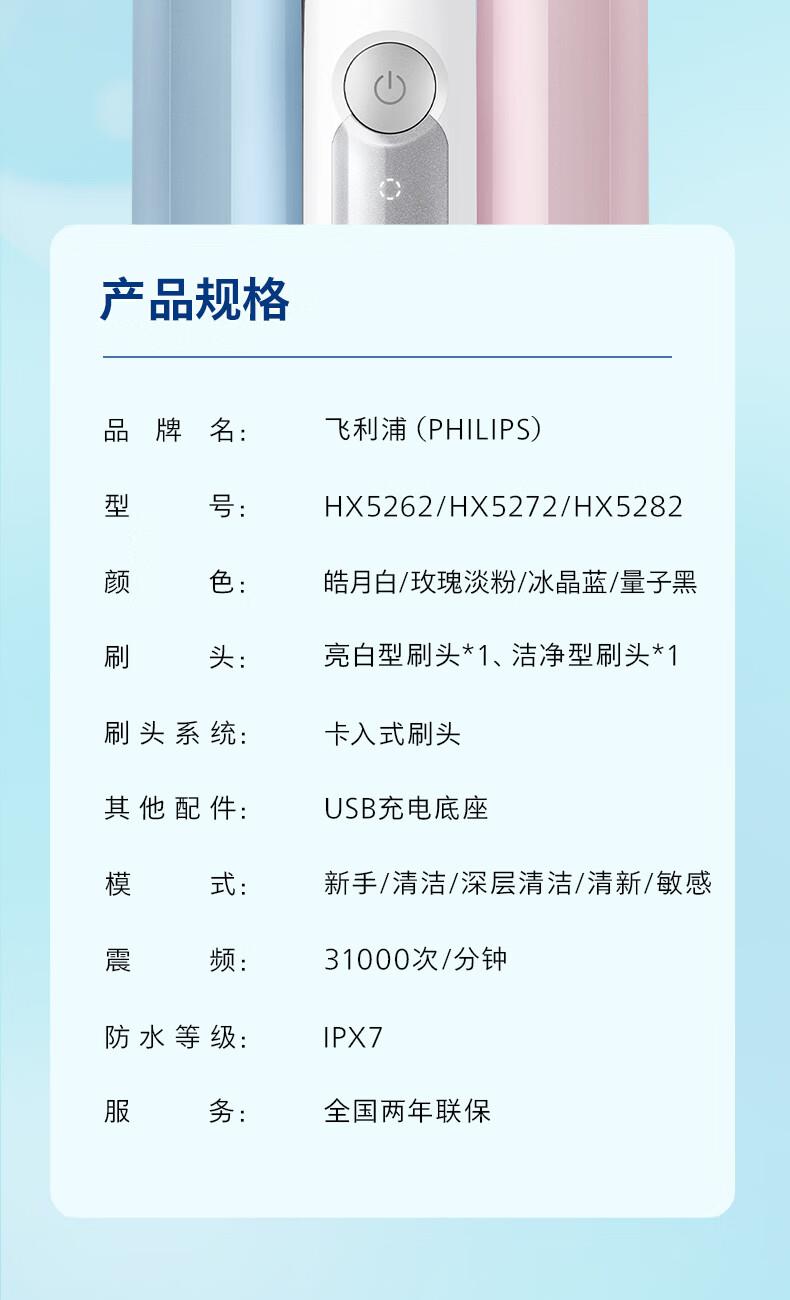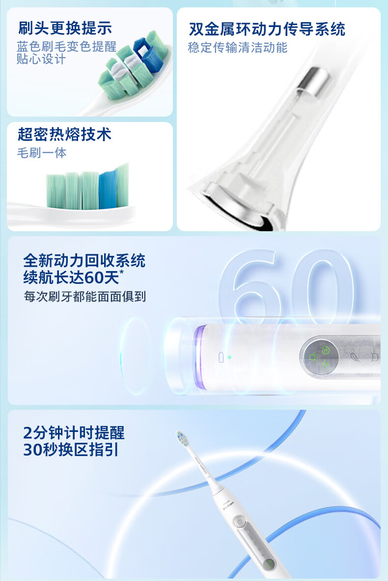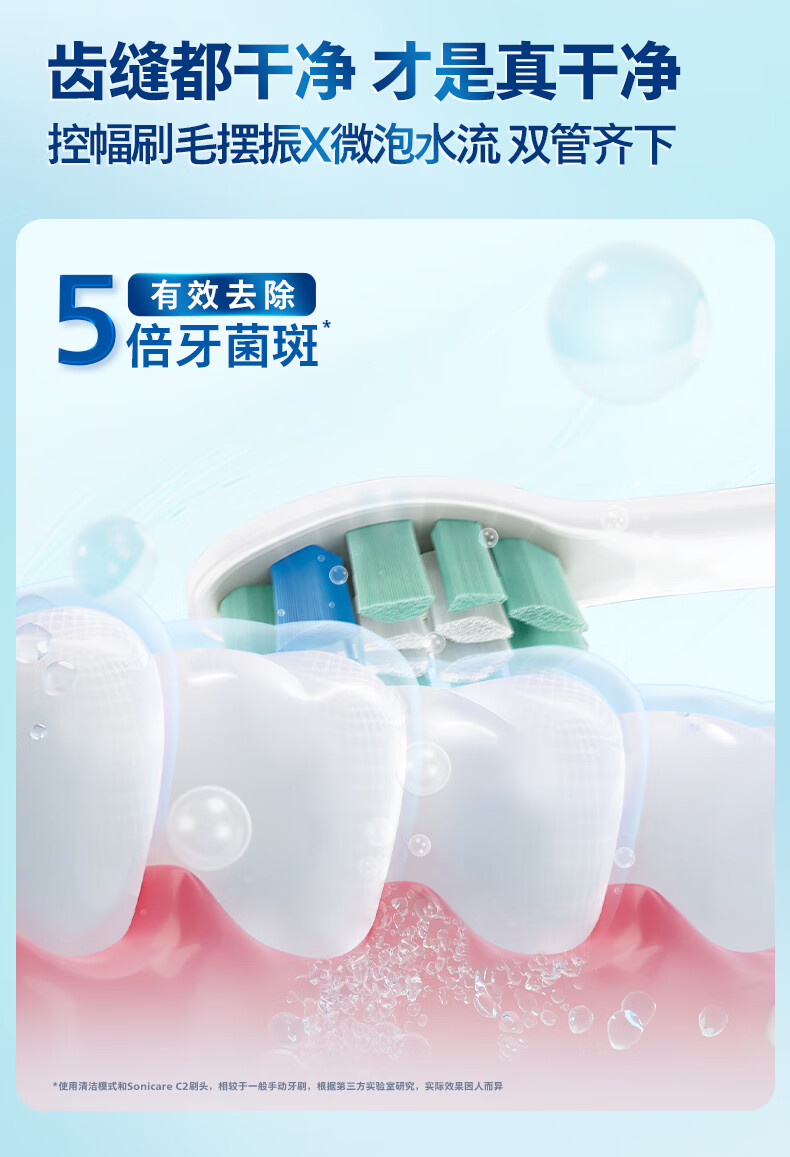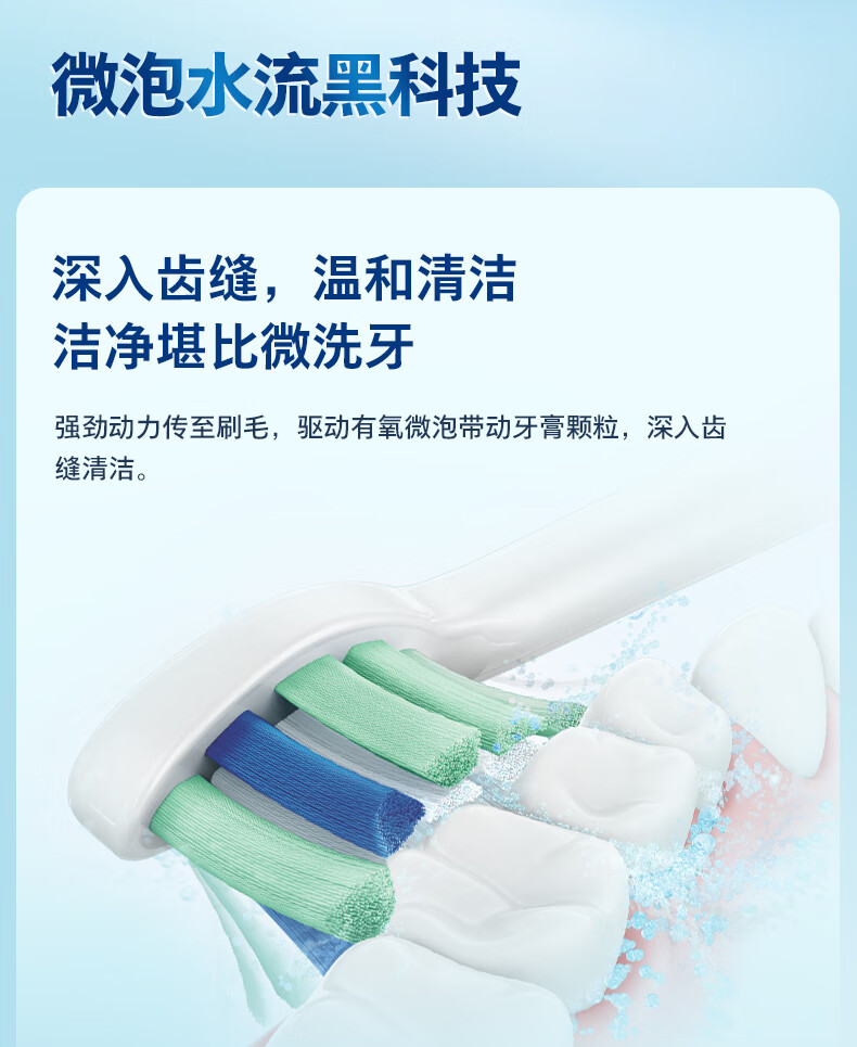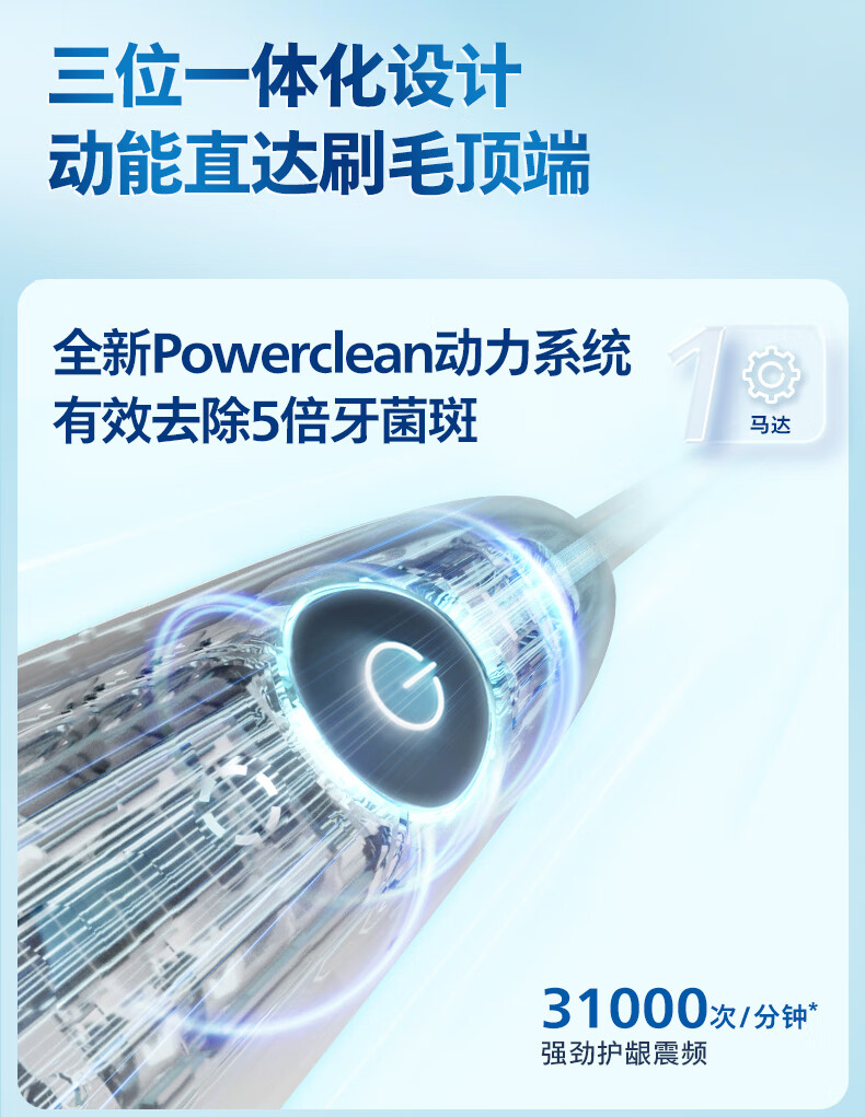 全新Powerclean動力系統(tǒng)有效去除5倍牙菌斑 31000次/分鐘強(qiáng)勁護(hù)齦振頻