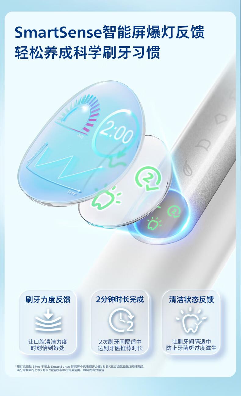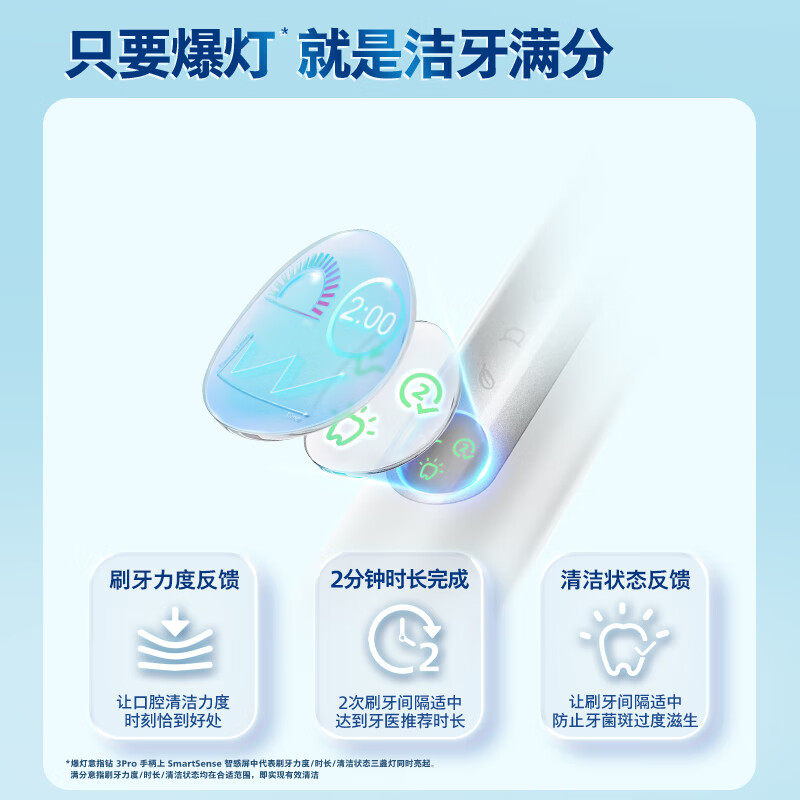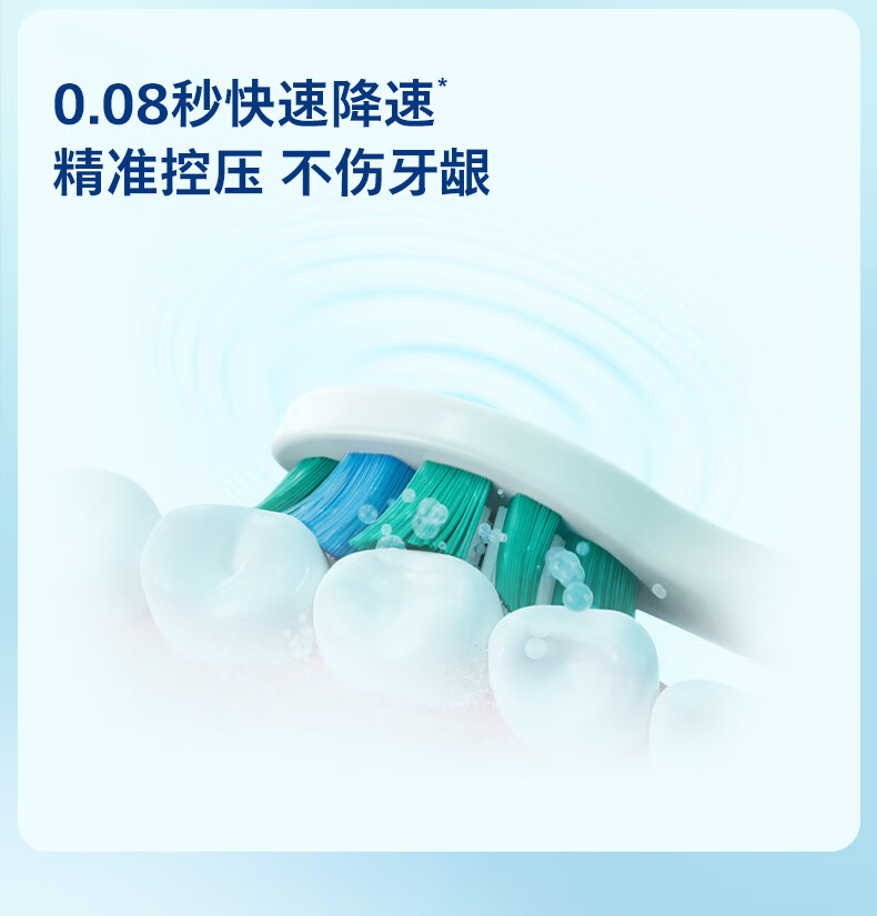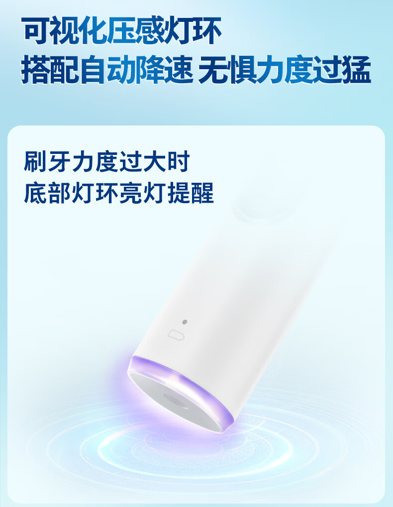可視化壓感燈環(huán)搭配自動降速 無懼力度過猛 刷頭標(biāo)配2支
