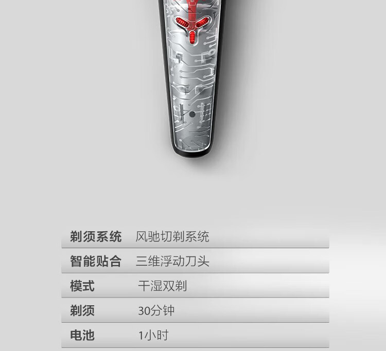 ? 飛利浦”小旋風(fēng)”電須刀,顛覆性透視機(jī)身 ,細(xì)節(jié)演繹時(shí)尚。 ? 風(fēng)馳切剃系統(tǒng),三維浮動(dòng)刀頭, 緊貼面部,舒適凈剃。 ? 自動(dòng)研磨刀片,IPX7防水,全身水洗,易清洗。 ? 1小時(shí)充電,30分鐘續(xù)航時(shí)間.