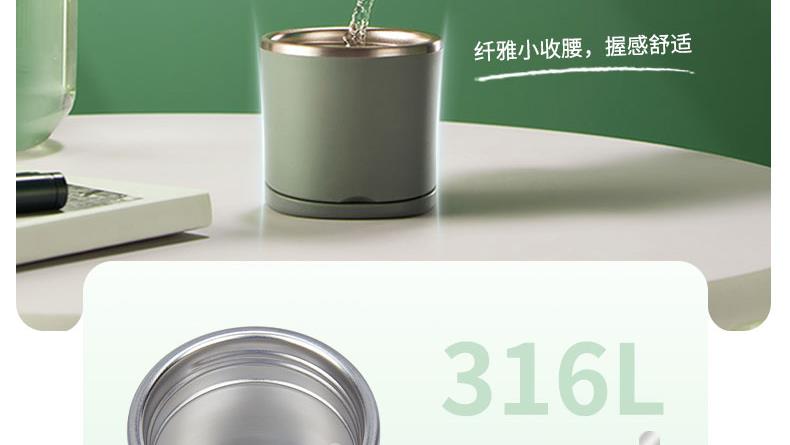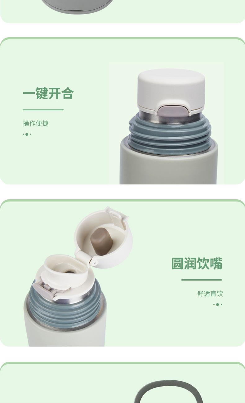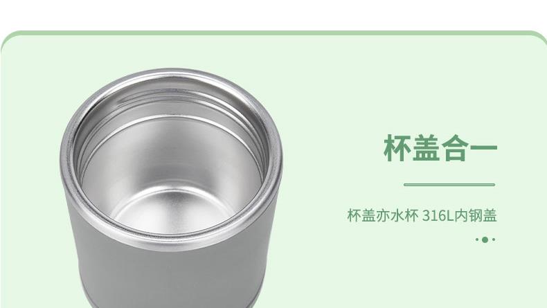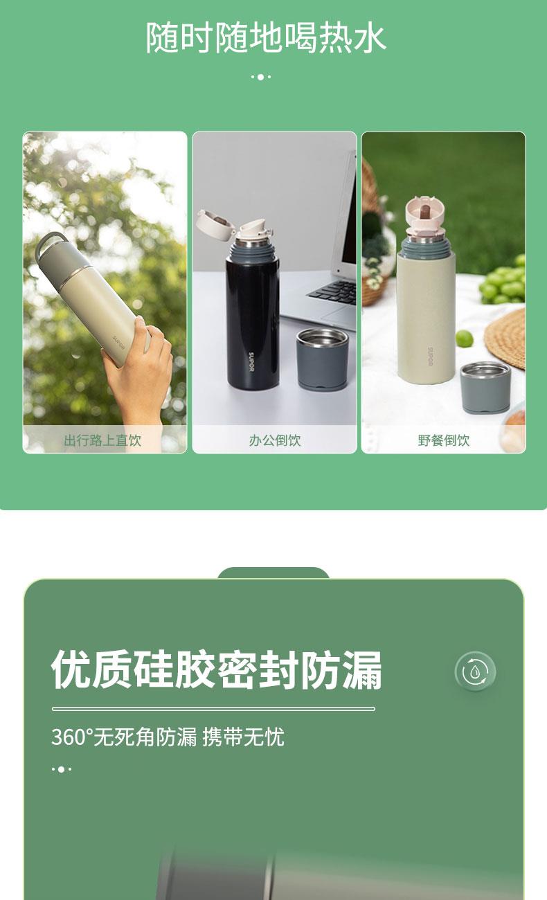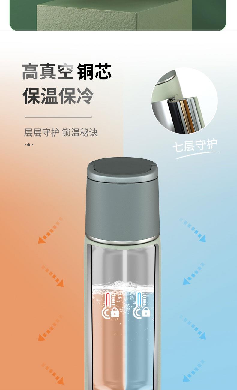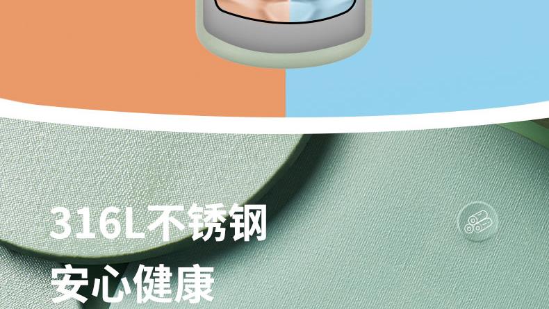 容量 500ml 材質(zhì) 316L不銹鋼、硅橡膠 規(guī)格參數(shù) 代發(fā)在庫顏色:深海藍(lán)/水墨綠 商品毛重(kg):0.529 功能賣點(diǎn) 1、316L不銹鋼內(nèi)膽及內(nèi)蓋,飲用健康; 2、一杯雙飲,杯蓋合一,隨享熱飲; 3、舒適直飲口,飲水順暢; 4、真空鍍銅,保溫保冷; 5、隱藏式提環(huán),輕松隨行; 6、內(nèi)鋼蓋,安心飲水。