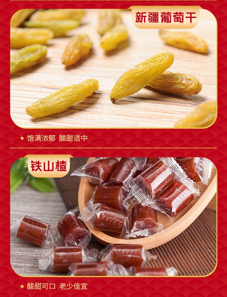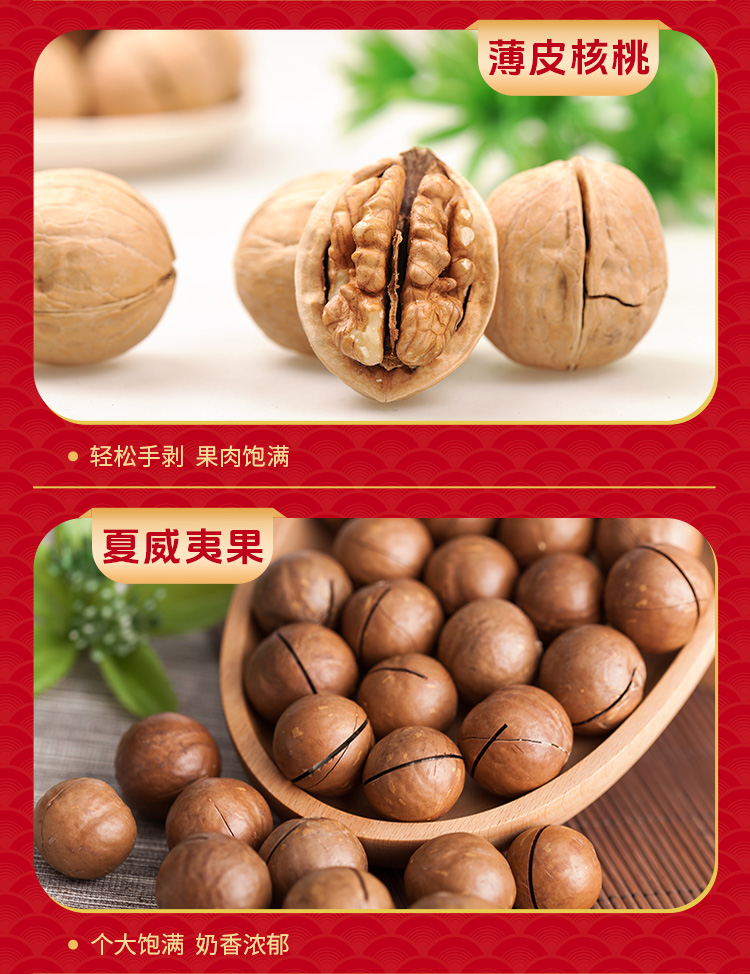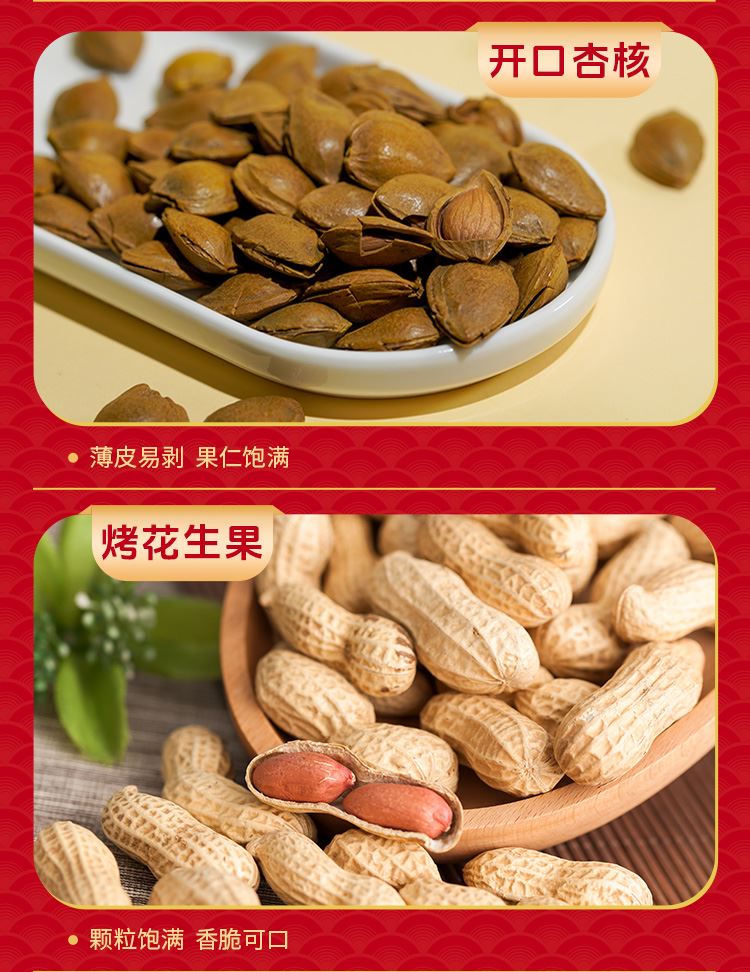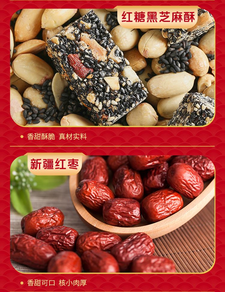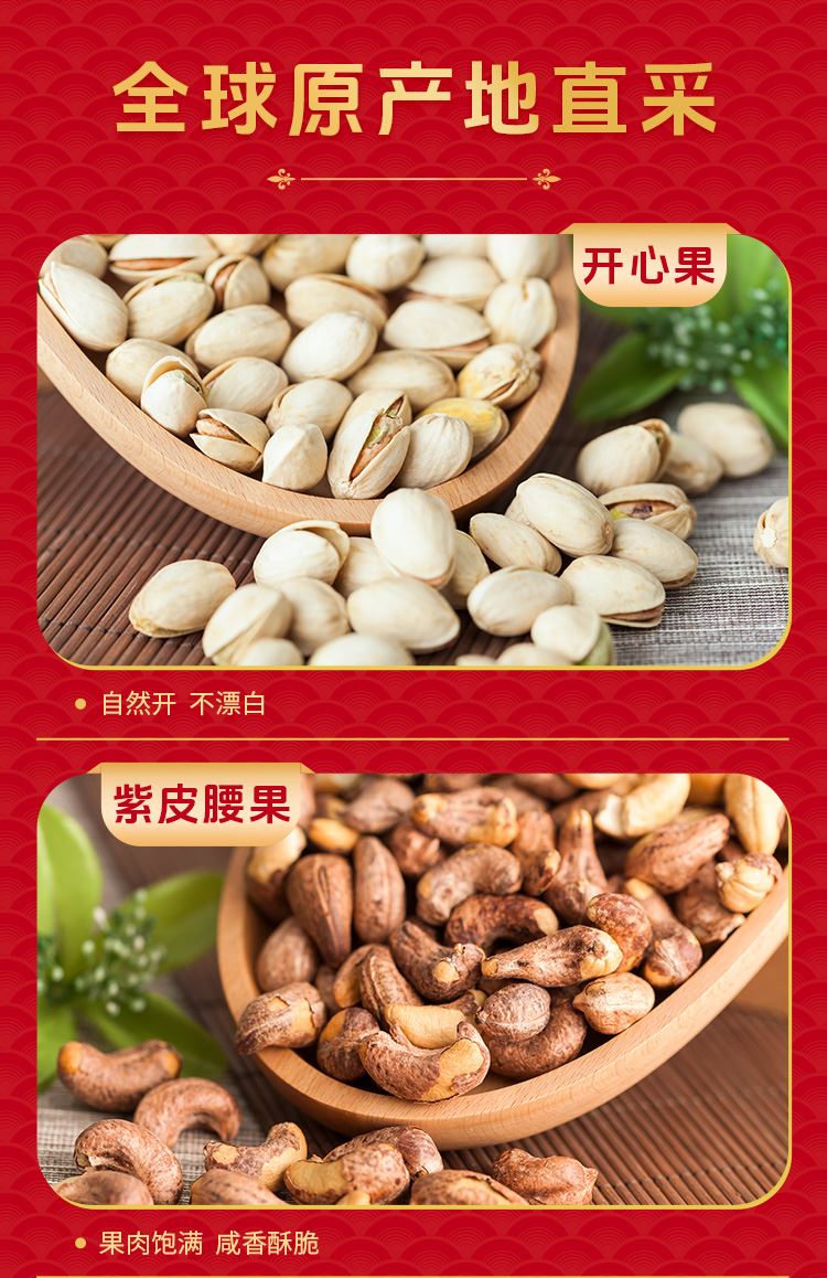 如水全家福禮盒 凈含量:2020g 如水開心果60g 如水紫皮腰果100g 如水薄皮核桃300g 如水夏威夷果100g 如水開口杏核100g 如水烤花生果280g 如水魚皮花生200g 如水怪味胡豆100g 如水紅糖黑芝麻酥120g 如水新疆紅棗260g 如水新疆葡萄干200g 如水鐵山楂200g