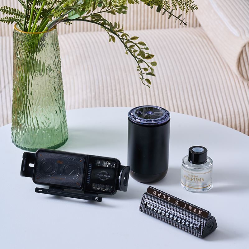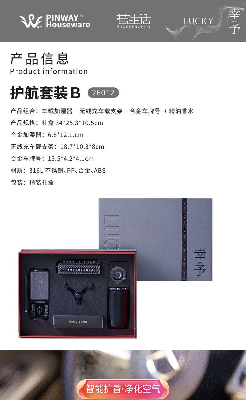 產(chǎn)品組合:車(chē)載加濕器+無(wú)線充車(chē)載支架+ 合金車(chē)牌號(hào) +精油香水 產(chǎn)品規(guī)格:禮盒34*25.3*10.5cm 合金加濕器:6.8*12.1.cm 無(wú)線充車(chē)載支架:18.7*10.3*8cm 合金車(chē)牌號(hào):13.5*4.2*4.1cm 材質(zhì):316L不銹鋼、PP、合金、ABS 包裝:精裝禮盒